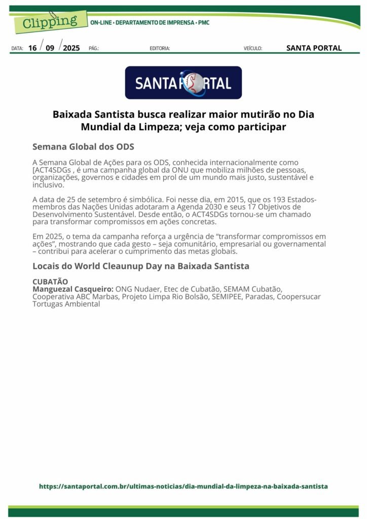 • Praça dos Emancipadores, s/nº - Centro - Cubatão/SP - CEP 11510-900