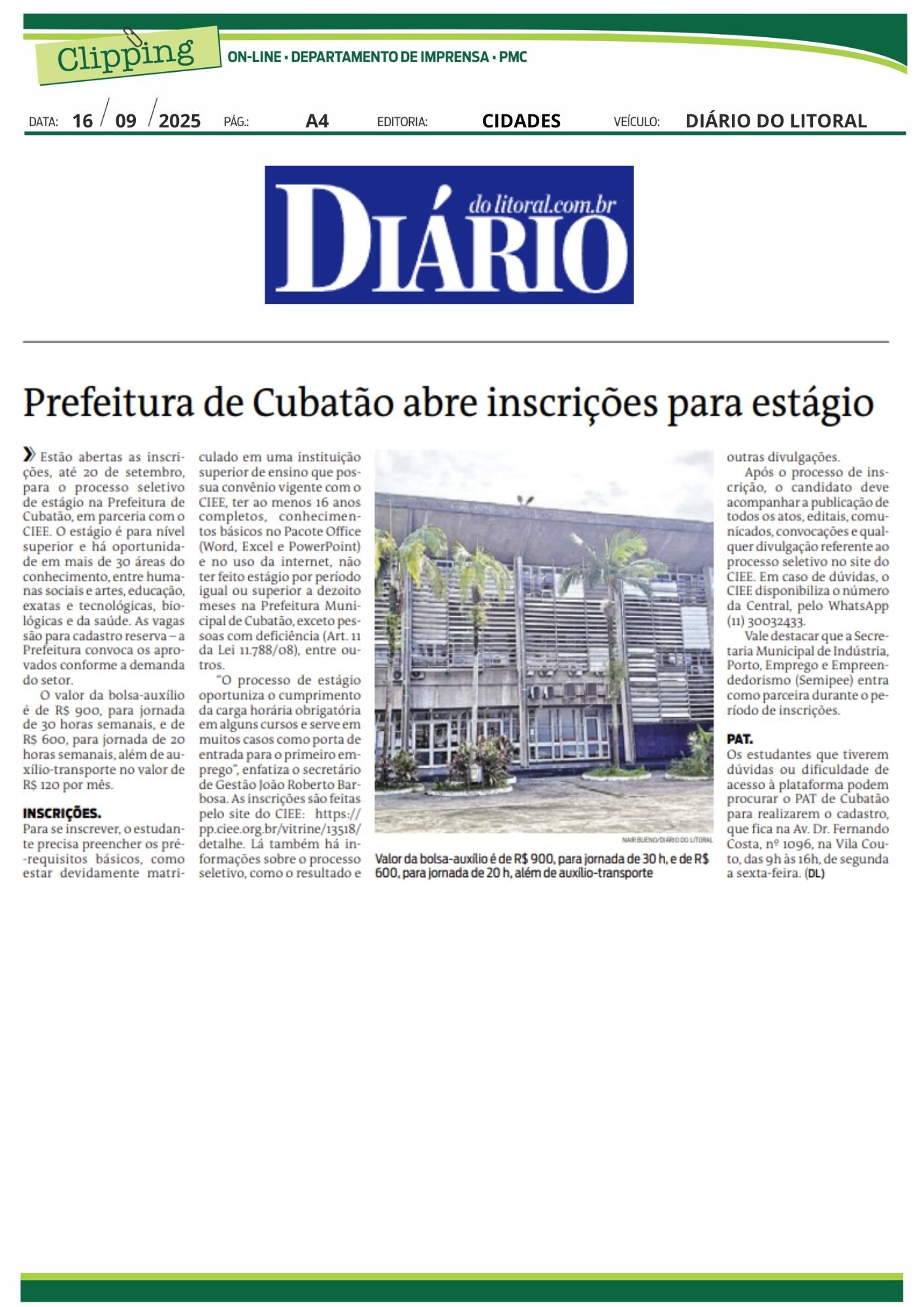 © Copyright Município de Cubatão - Todos os direitos reservados. Desenvolvido por DSJ Soluções Digitais