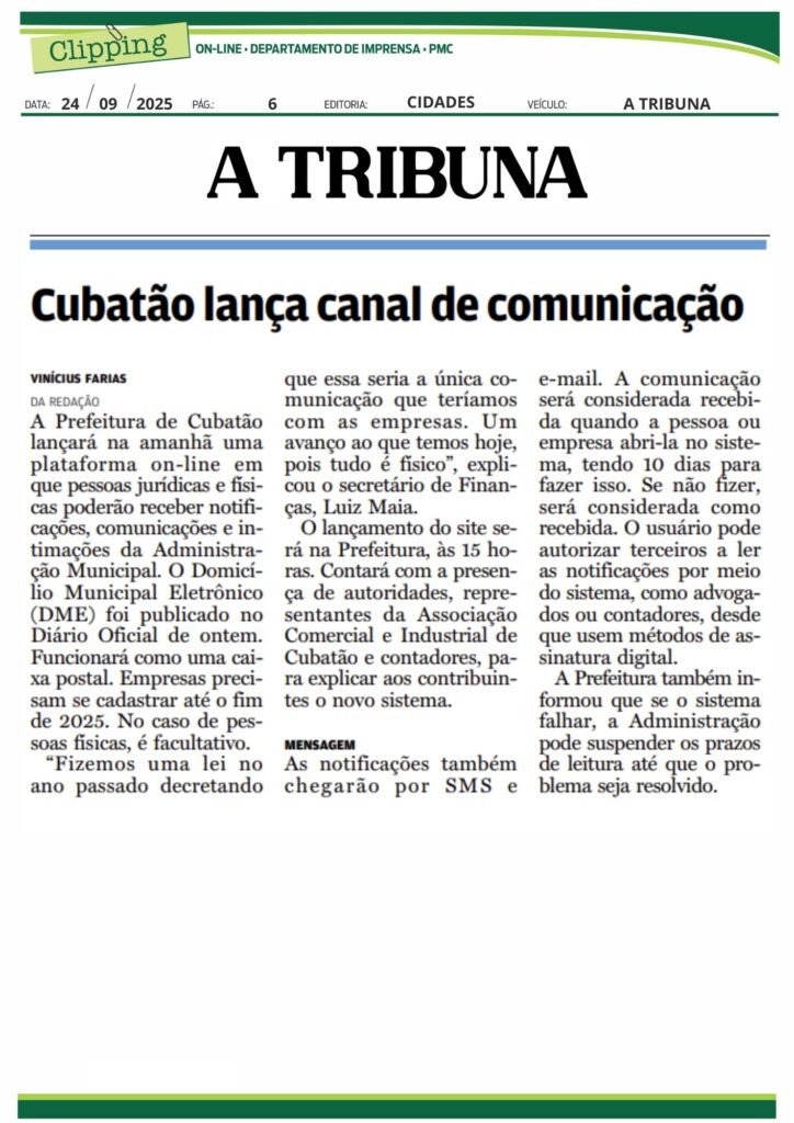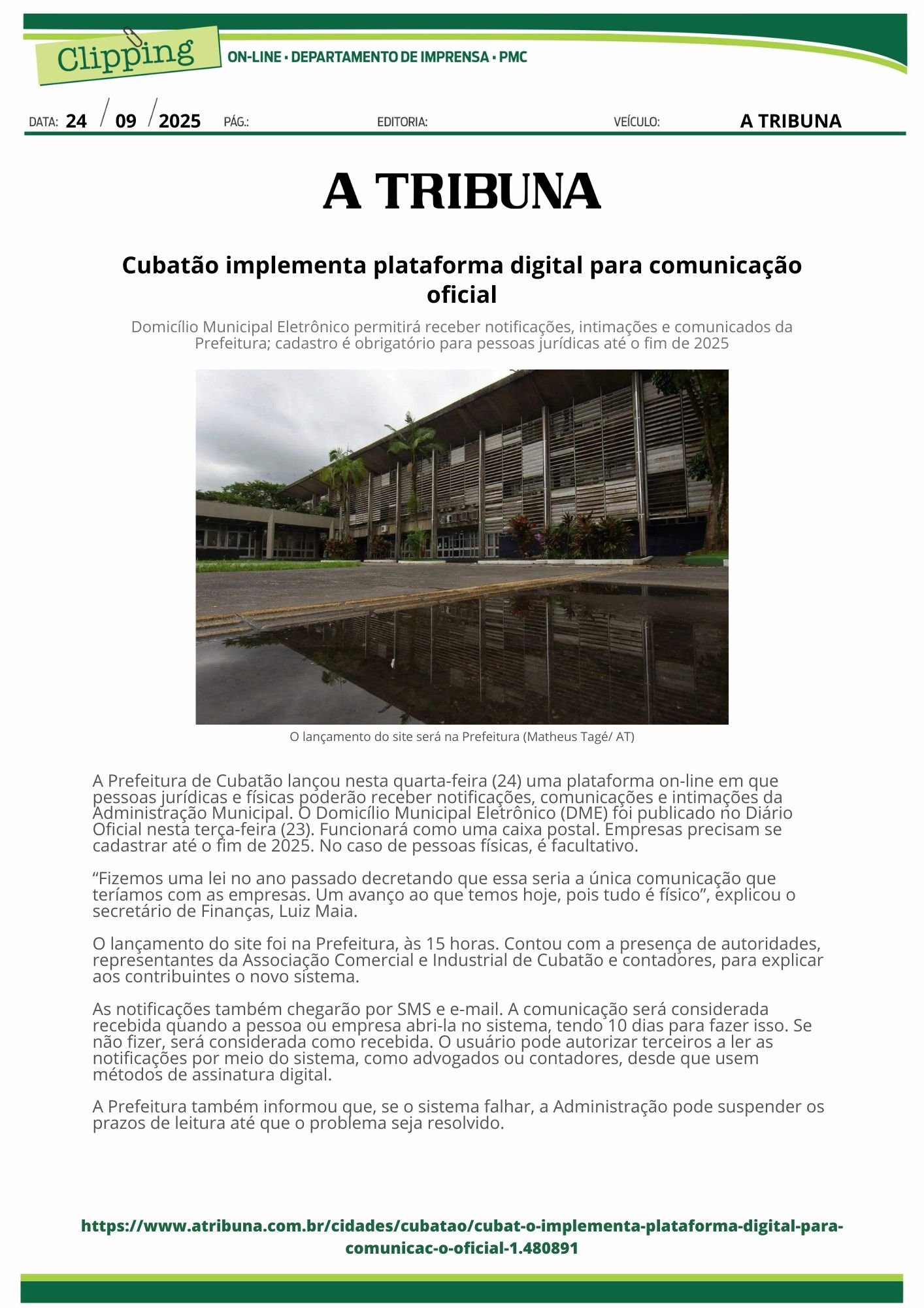 Solicitação de Acesso ao ISS-Web para empresas de Fora de Cubatão