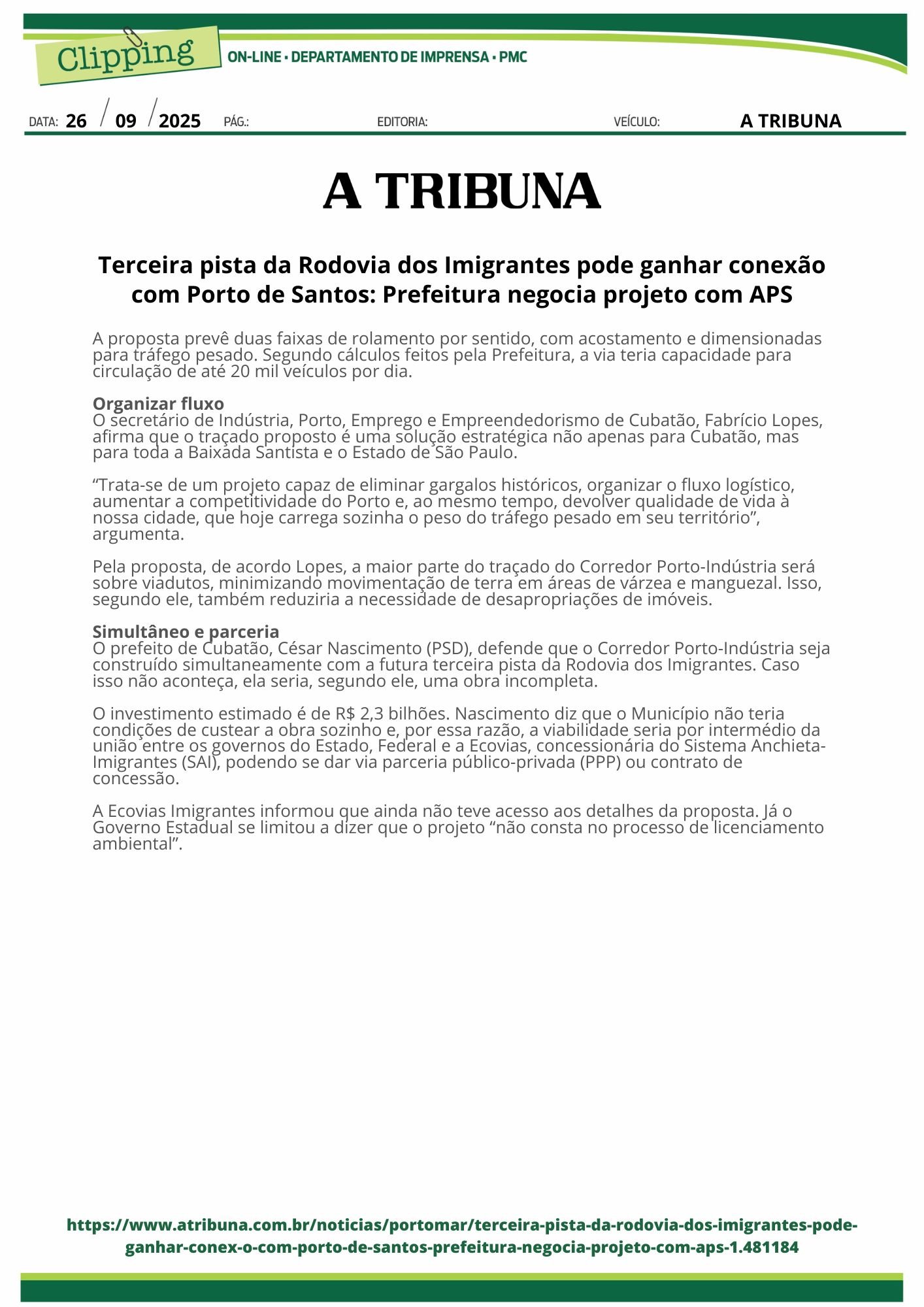 Solicitação de Acesso ao ISS-Web para empresas de Fora de Cubatão