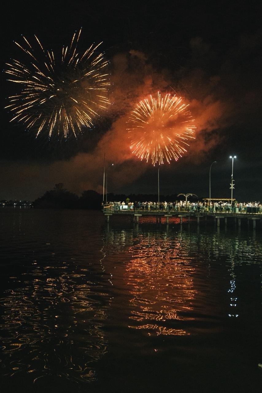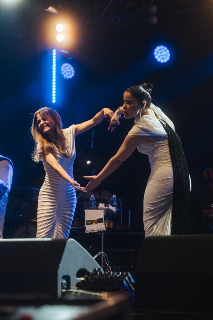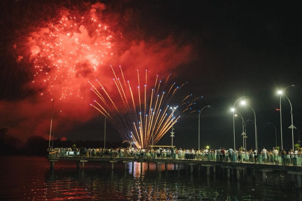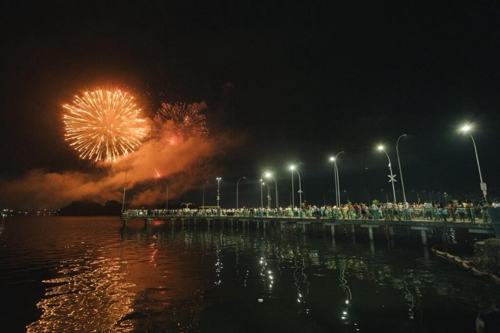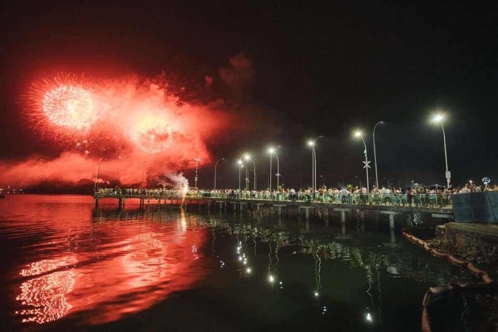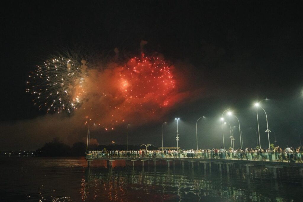 A dupla sertaneja, uma das mais queridas do Brasil, conduziu a contagem regressiva para 2026 de forma emocionante. Ao fundo, cerca de 3,5 toneladas de fogos de artifício sem estampido iluminaram o céu da cidade durante 15 minutos. Entre cumprimentos, brindes e abraços do público presente, Maiara e Maraísa interpretaram sucessos como “Medo Bobo”, “Sorte que Cê Beija Bem” e “A Culpa é Nossa”. As artistas ainda foram surpreendidas no palco com um “Parabéns pra Você”, com a presença do prefeito César Nascimento e da vice-prefeita Andrea Castro, em um momento marcado por bolo de festa e celebração.